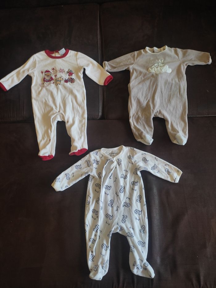 3 pyjamas taille 6 mois Blanc cassé, gris et blanc