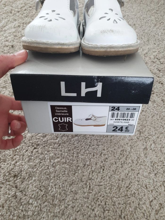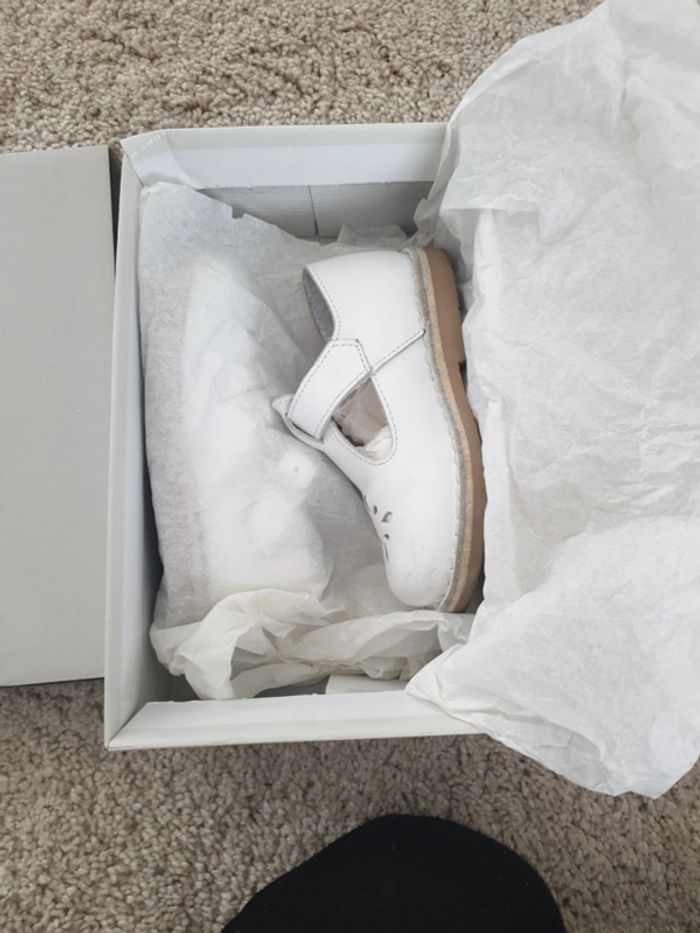 Chaussure en cuir blanc Taille 24 Portée 2 fois (ma fille a râpé le cuir en traînant les pied)