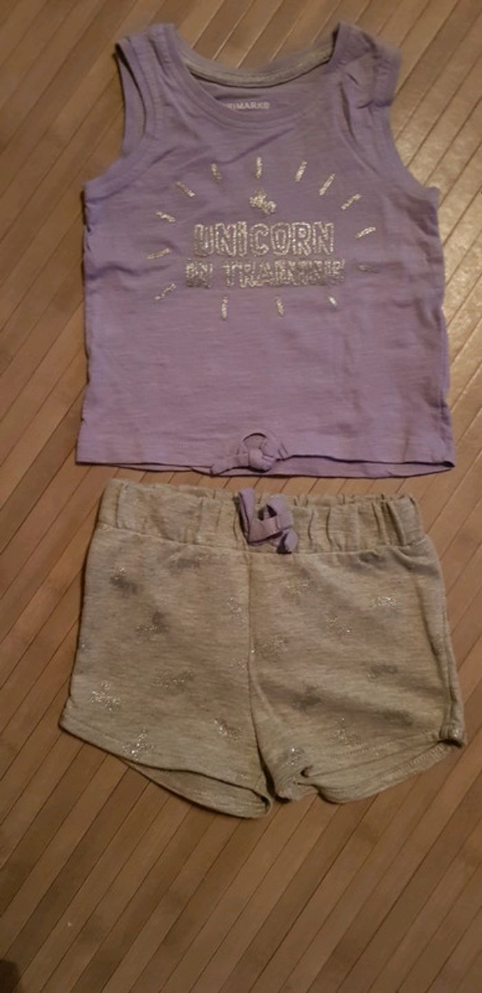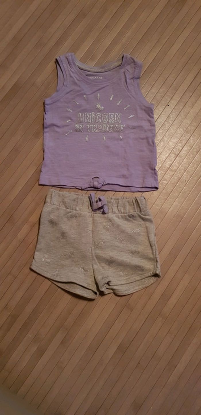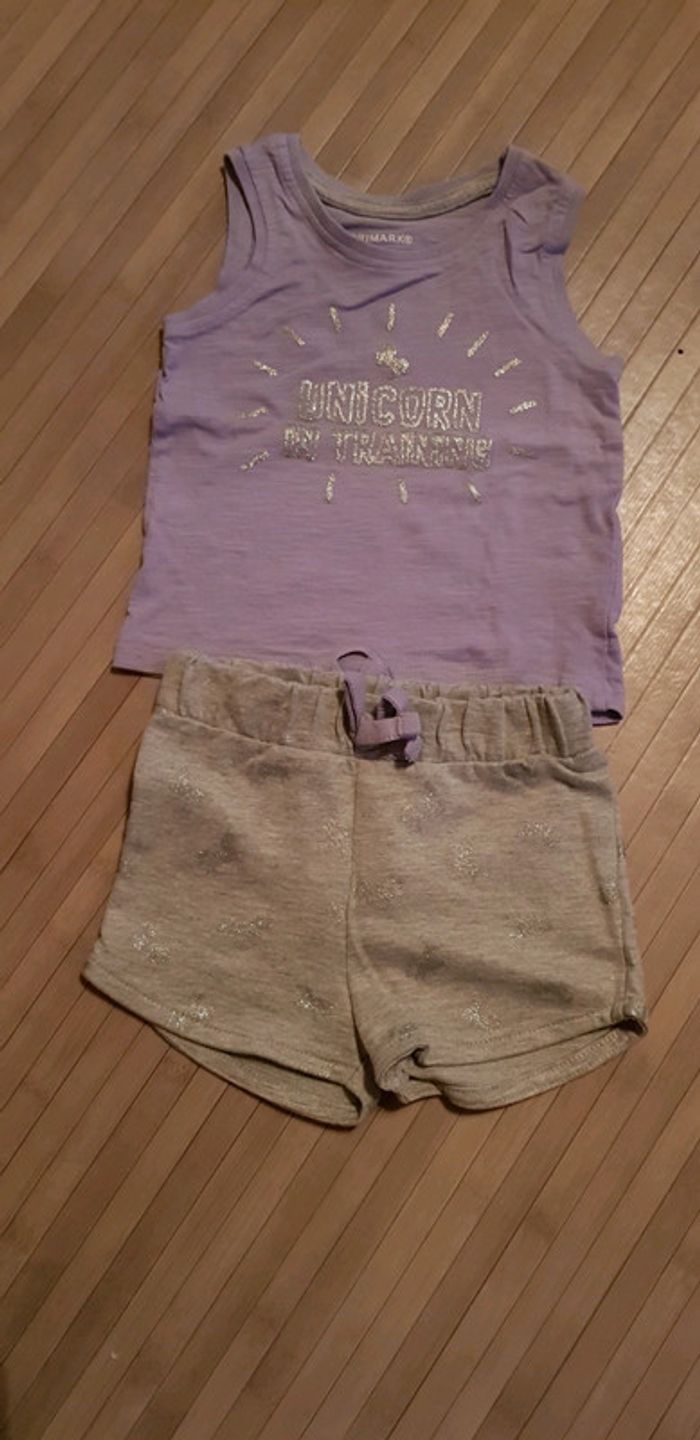 Ensemble coton primark Violet/gris/argenté 6/9mois Motif argenté En parfait état