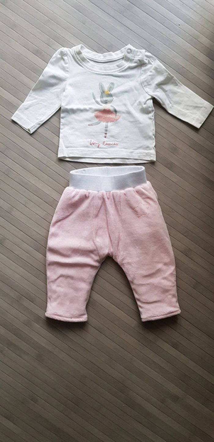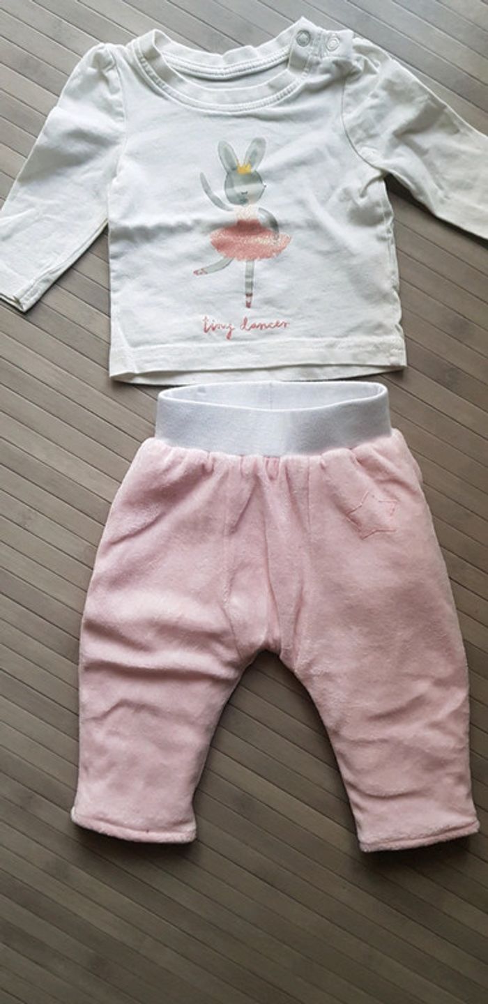 Ensemble 2 pièces, pantalon très épais en velours haut Primark en coton état comme neuf 3mois