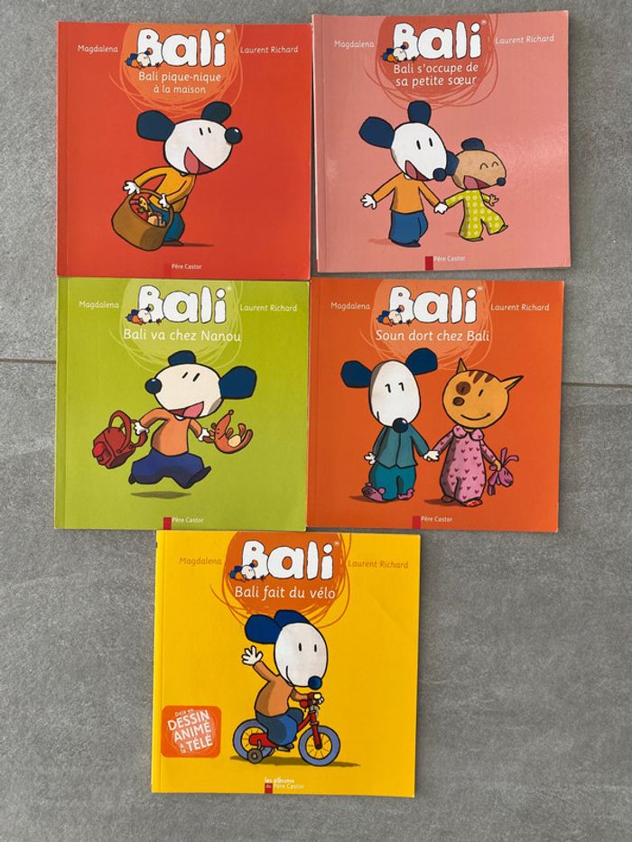 Lot de 5 livres enfant Bali Très bon état Bali pique-nique à la maison Bali s'occupe bien de sa petite soeur Bali va chez Nanou Soun dort chez Bali Bali fait du vélo