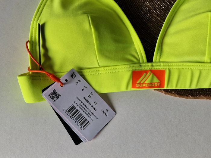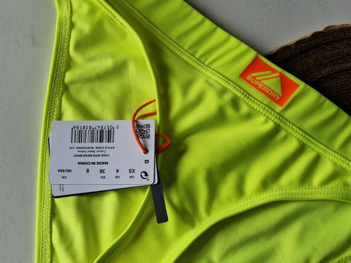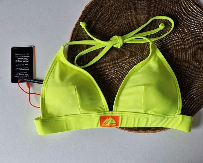 Maillot de bain 2 pièces SUPERDRY Neuf avec étiquette 🏷 Haut taille 38 resserable au cou, fermeture crochet dans le dos Slip taille 36 Couleur jaune fluo