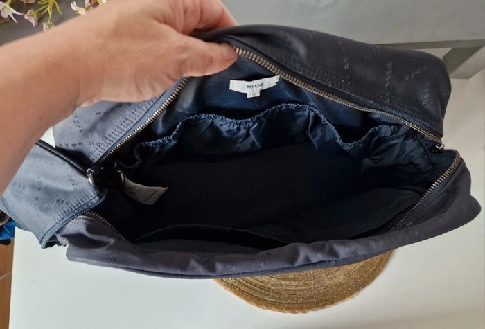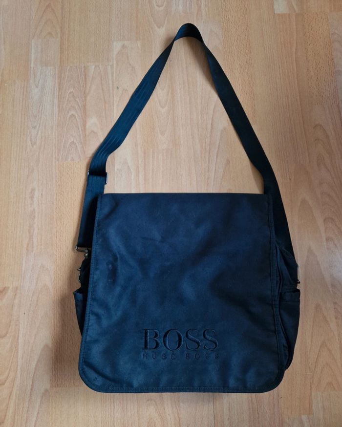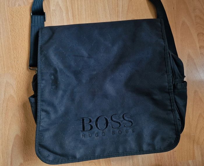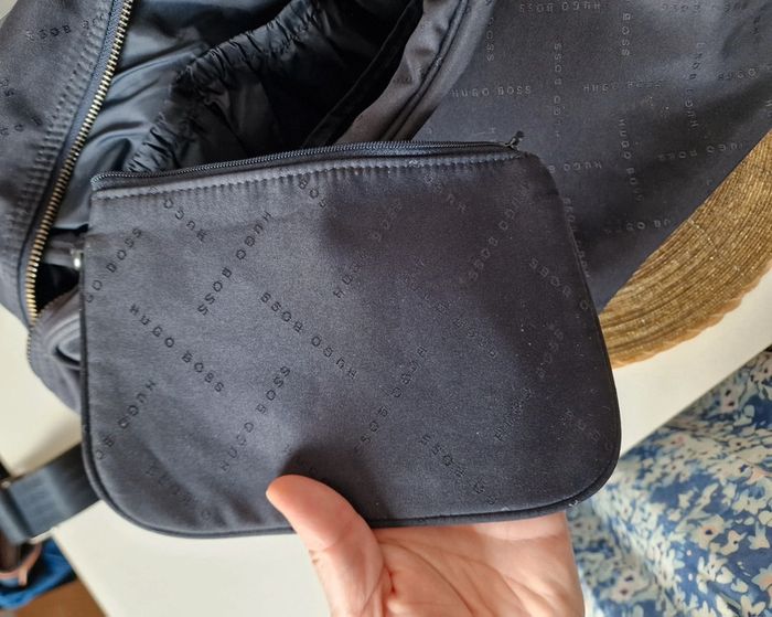 Sac homme Marine avec pochette HUGO BOSS Très bon état, juste quelques traces de salissures Bandoulière réglable et amovible 36 x 35 cm