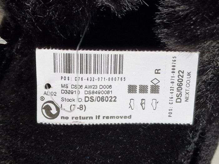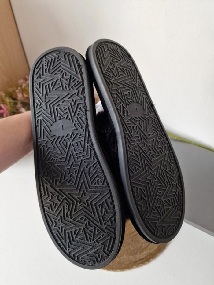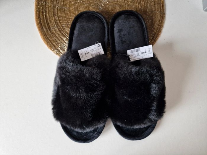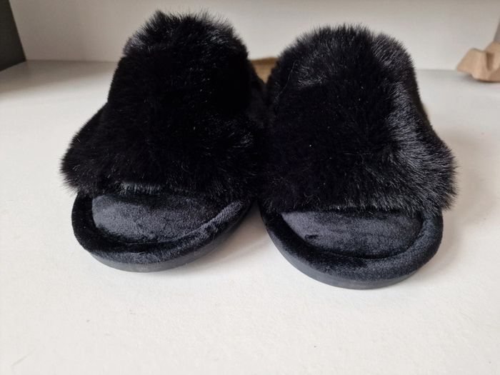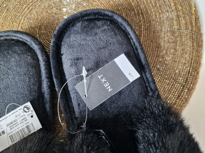Chaussons pantoufles à poils noir , ouvert au bout NEXT Taille L 7 - 8 39 / 40 Neuf avec étiquette 🏷