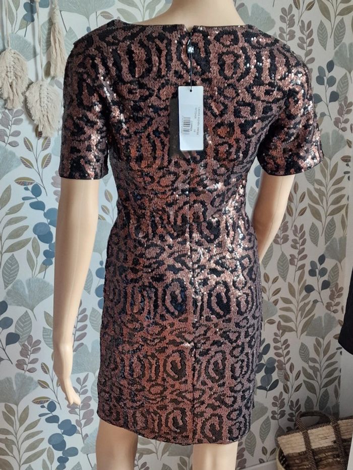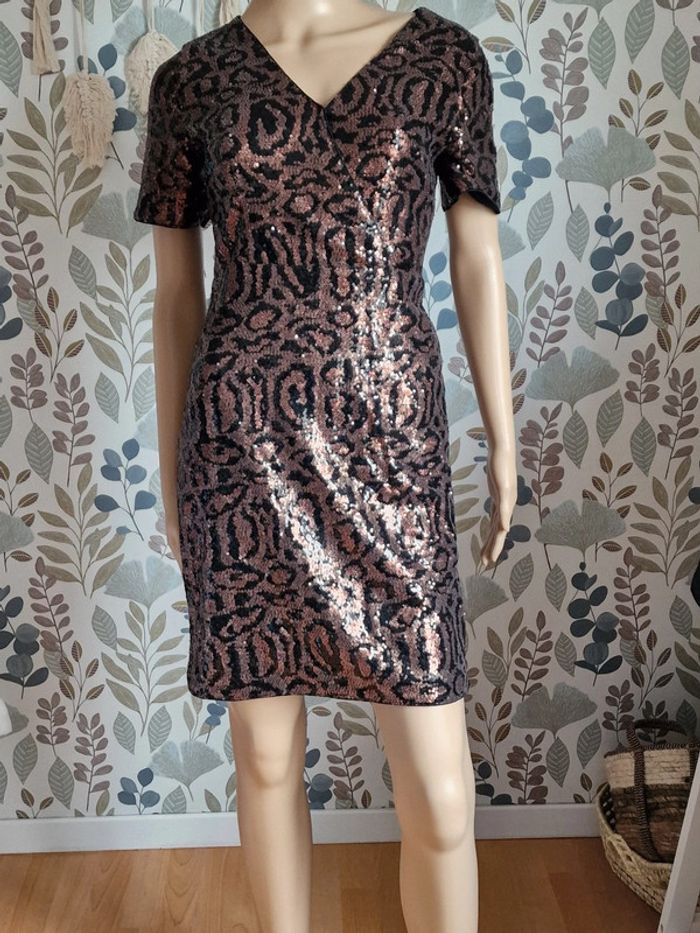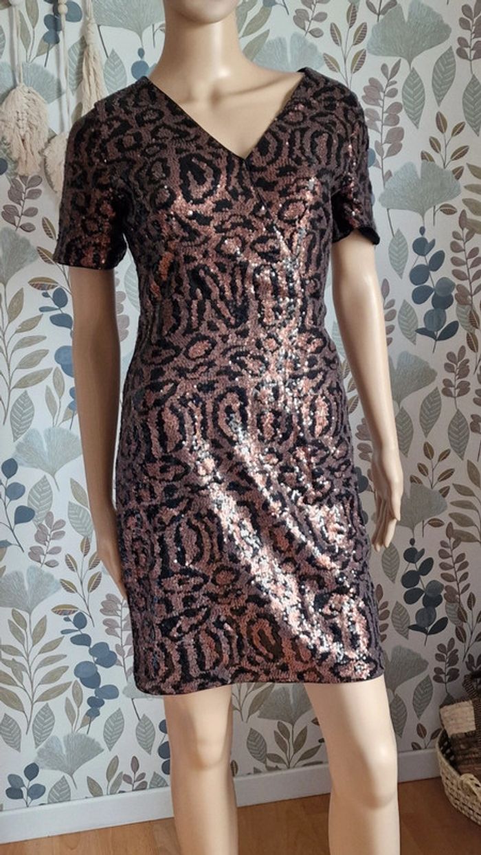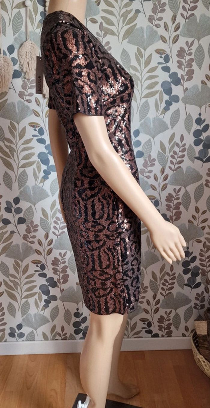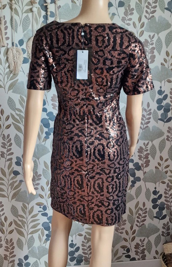 Robe à sequins bronze et noir 34 MOLLY BRACKEN Neuve avec étiquette 🏷 Zip dans le dos