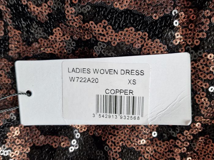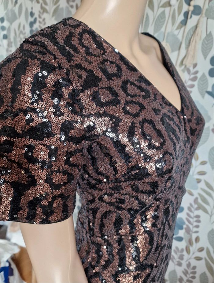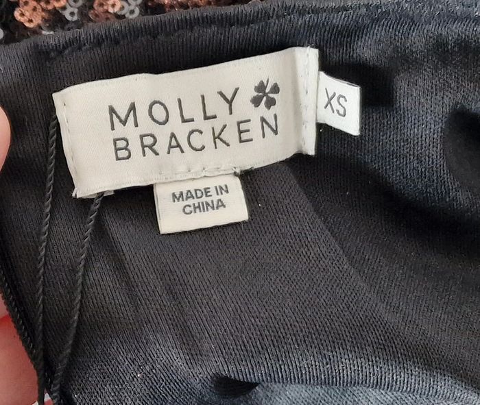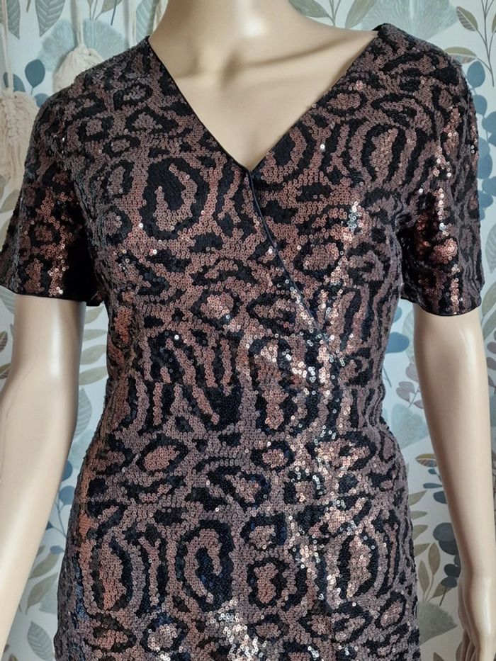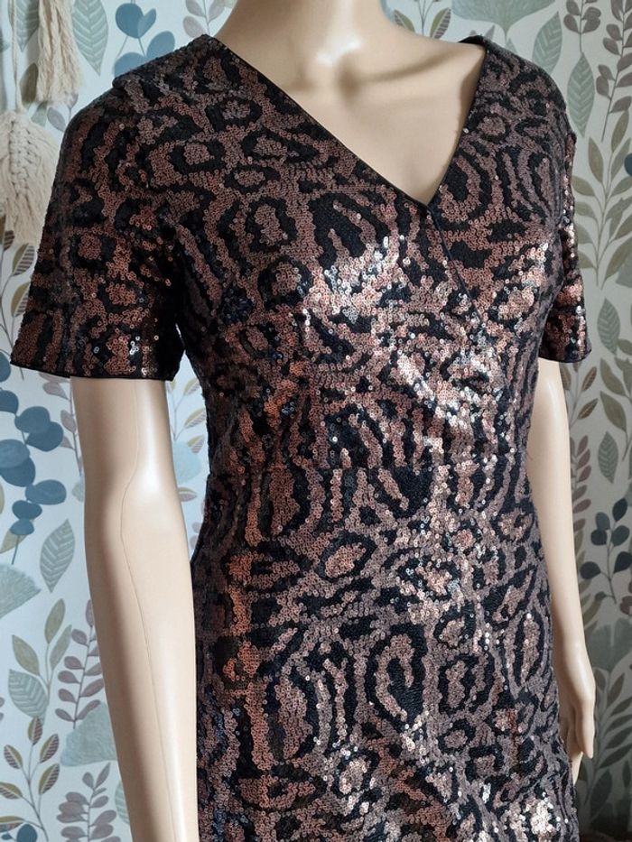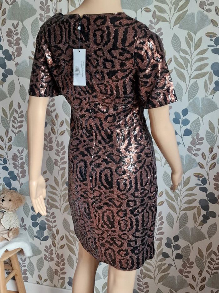 Robe à sequins bronze et noir 34 MOLLY BRACKEN Neuve avec étiquette 🏷 Zip dans le dos