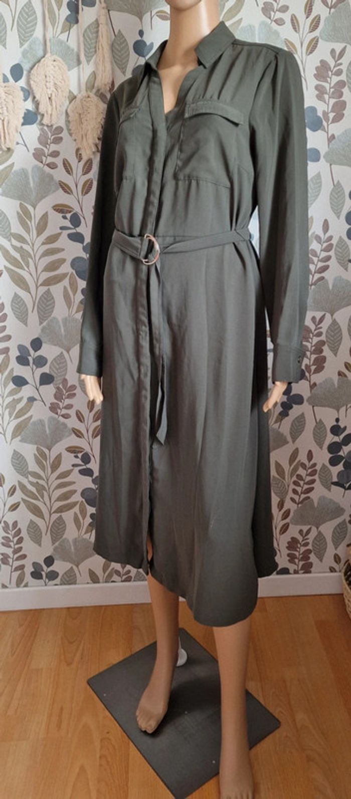 Longue robe femme kaki H&M Avec ceinture