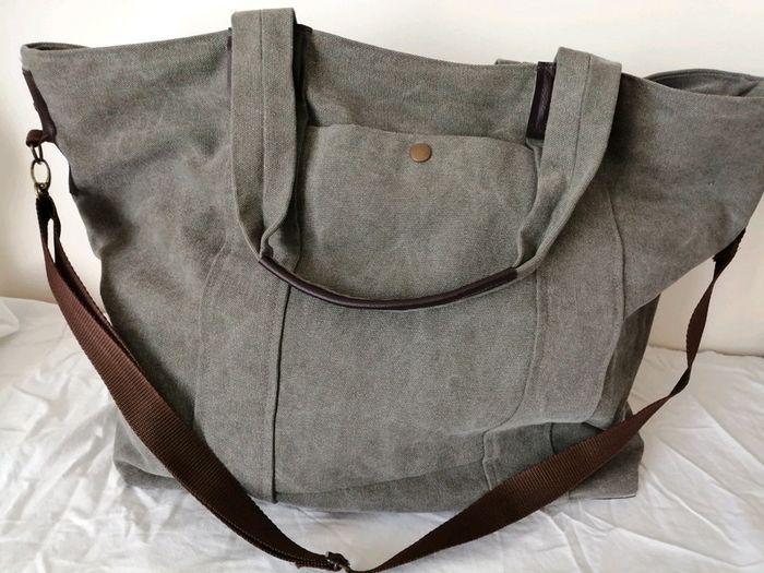 Ma Collection, mes créations MODÈLE UNIQUE - May and Mum Fait main Sac de voyage / sac de week-end Hauteur 43 cm x largeur 43 cm x profondeur 20 cm - Anses 58 cm + bandoulière réglable (sangle polypropylene) Toile grise épaisse Entièrement doublé coton Deux poches intérieures + porte clés Grande Poche extérieure Fermeture éclair Fond simili cuir