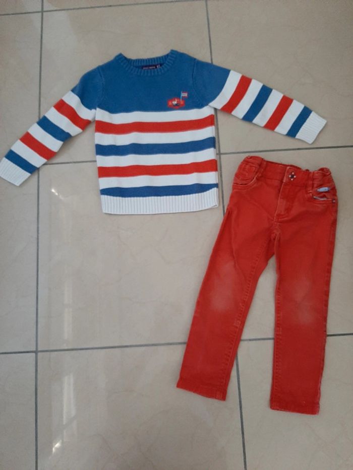 A vendre ensemble composé d'un pull et d'un jean garçon 2 ans sergent major Très bon état Usure normale Pas de trou ni tache Genoux légèrement usés #marionm51_garçon24mois