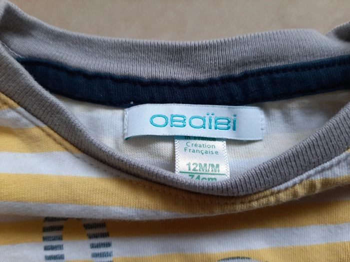 A vendre tee shirt manches longues garçon 12 mois okaidi Bon état Usure normale Un petit trou dans le dos (cf photo) Pas de tache #marionm51_garçon12mois