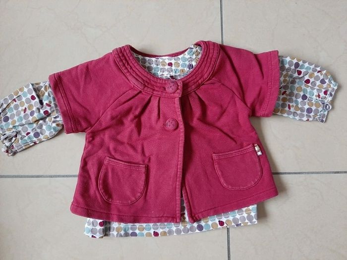 Ensemble tee shirt manches longues + veste fille 6 mois - photo numéro 1