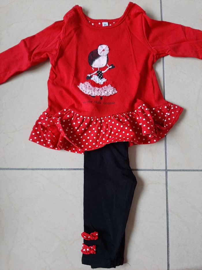 Ensemble tee shirt manches longues + legging fille 6 mois - photo numéro 1