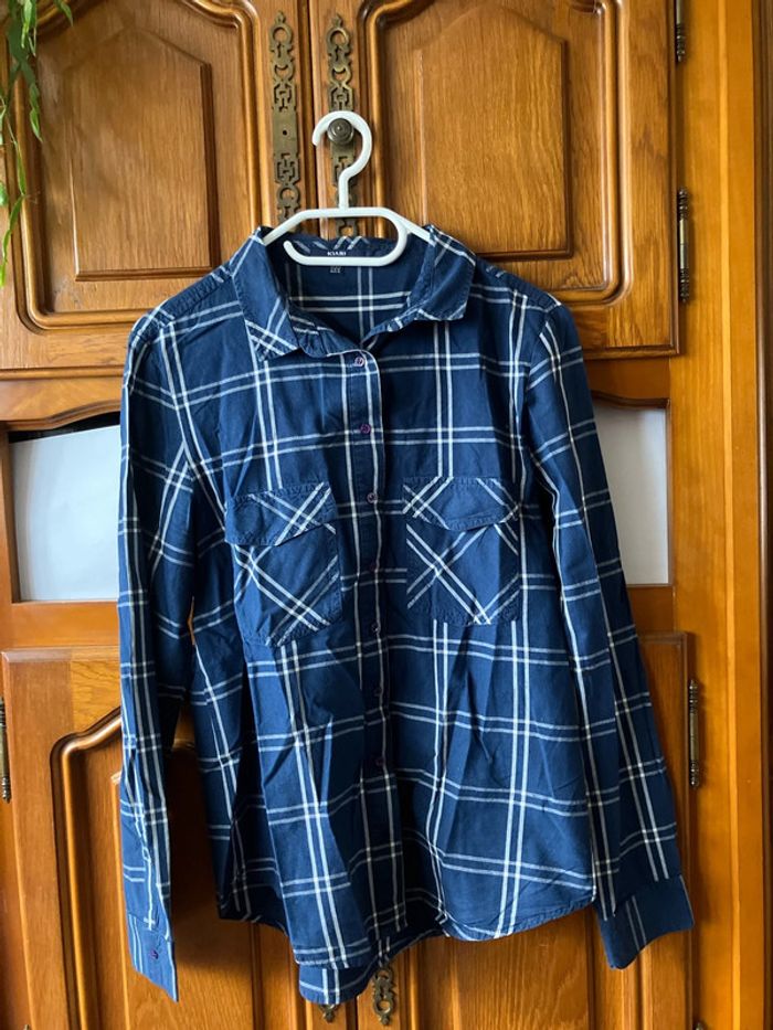Chemise bleue à carreaux de marque kiabi