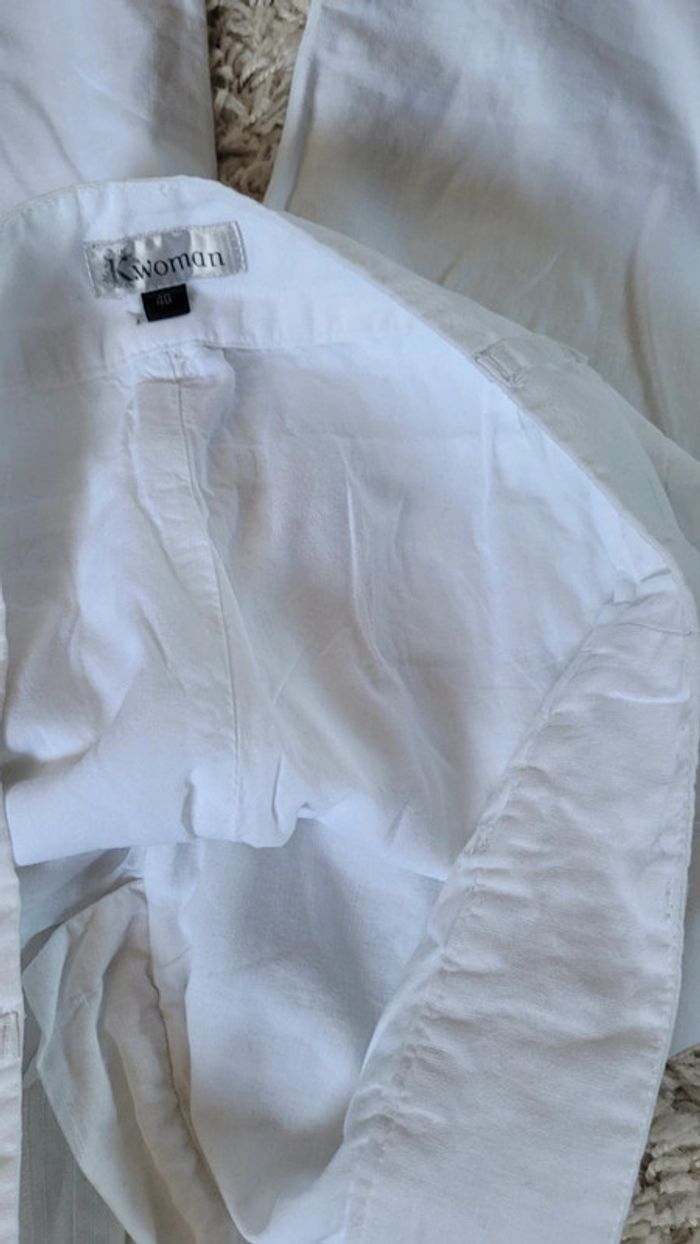 Pantalon droit blanc en lin doublé - photo numéro 11