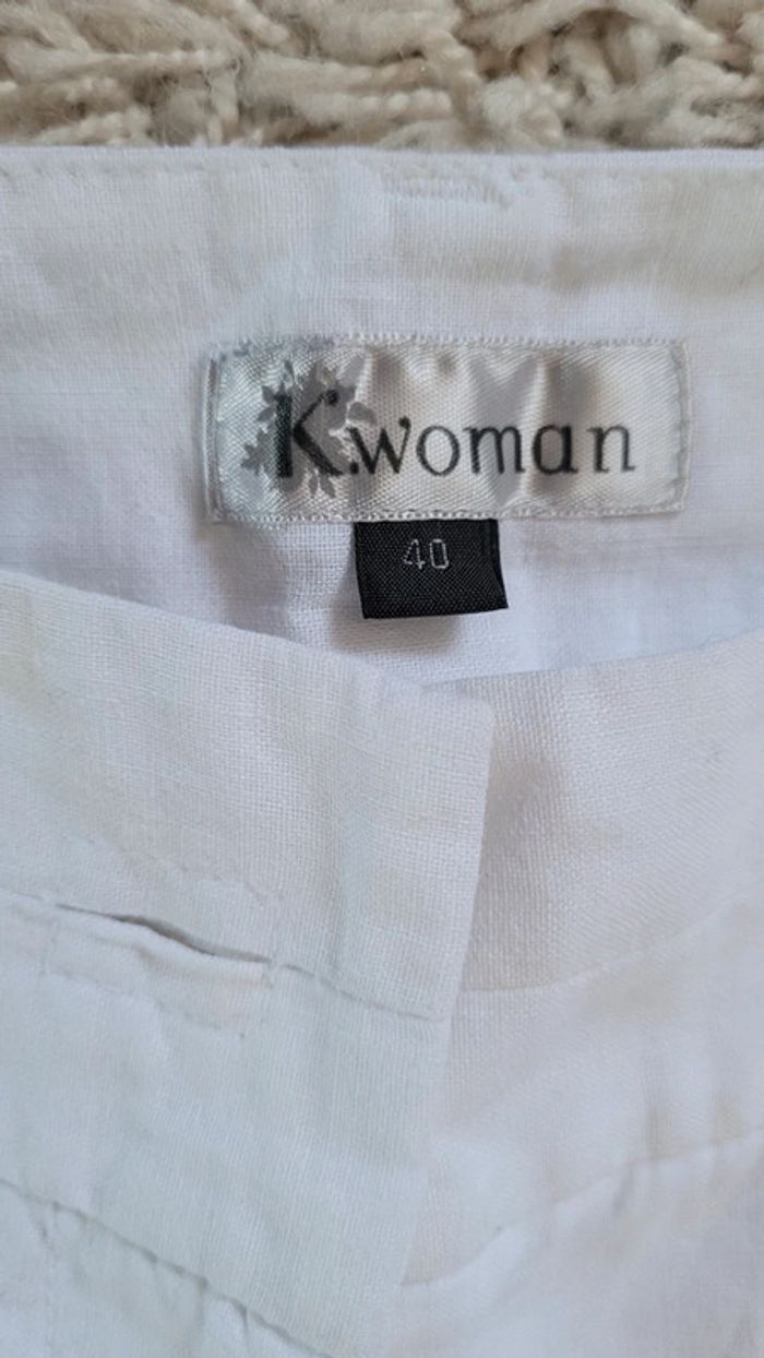 Pantalon droit blanc en lin doublé - photo numéro 10
