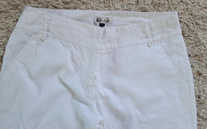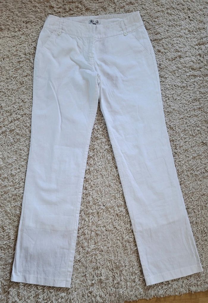 Pantalon droit blanc en lin doublé - photo numéro 1