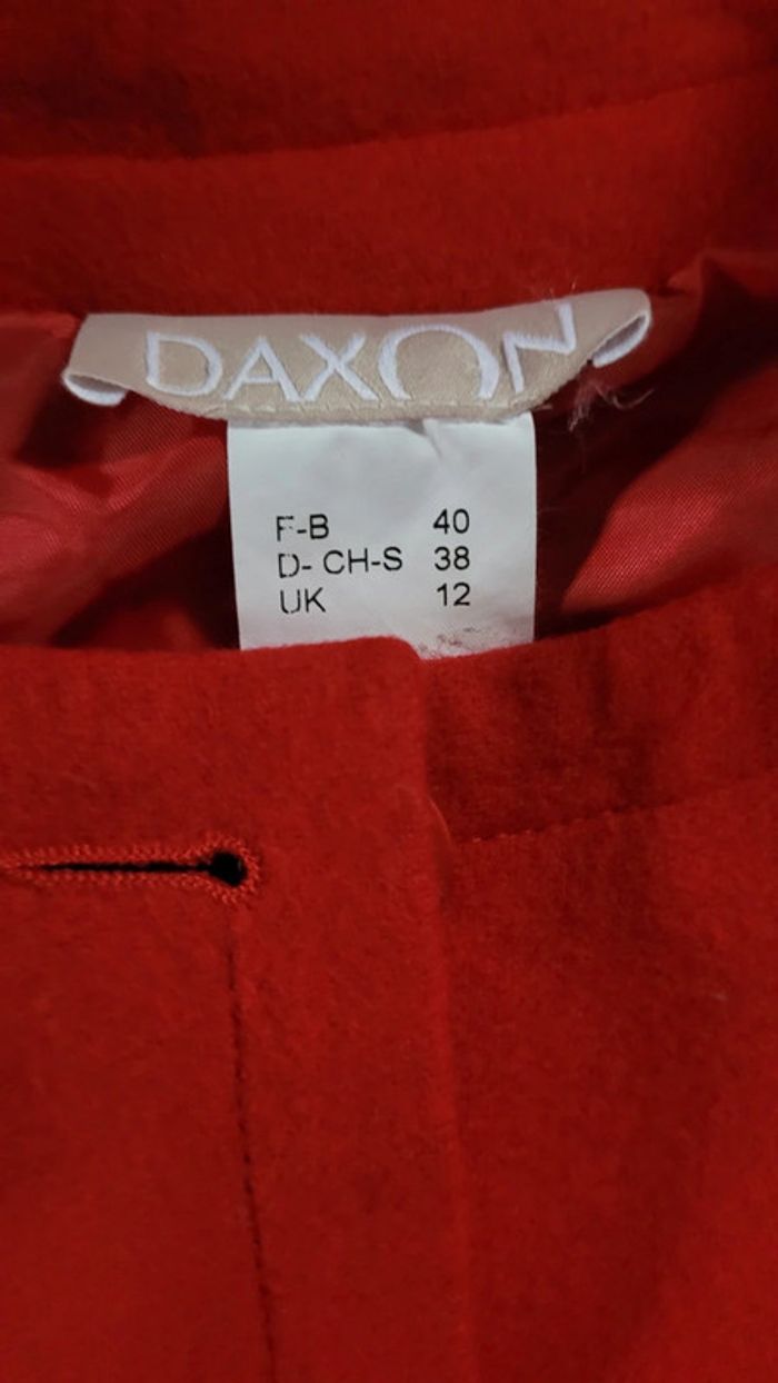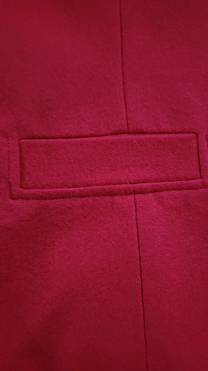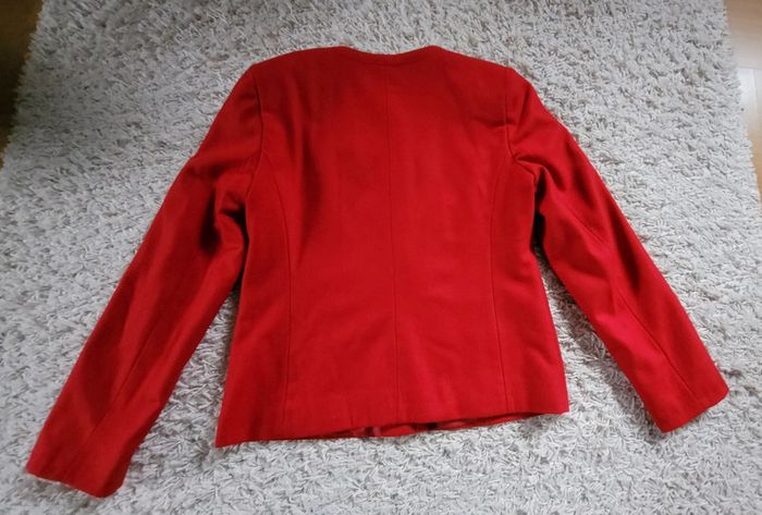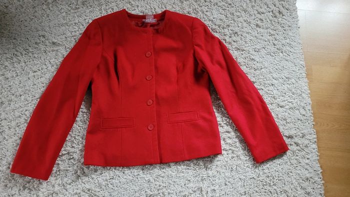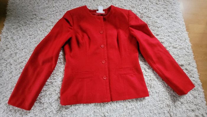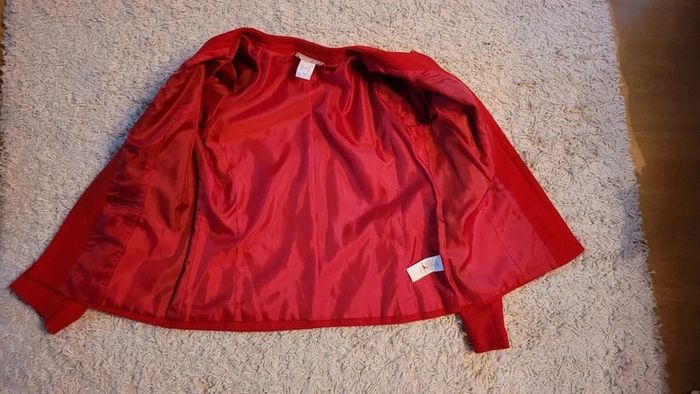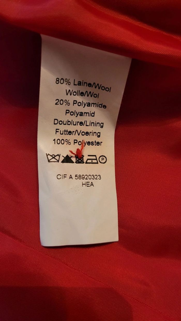 #40emma35310 Comme neuve Très belle matière Très belle couleur rouge Petites épaulettes Longueur 58 cm Poches encore cousues Envoi rapide