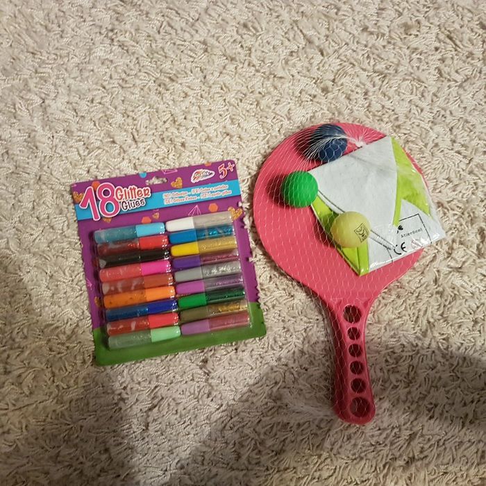 #jouetsemma35310 Neufs 18 colles glue à paillettes 2 raquettes et 3 balles 1 ballon gonflable Envoi rapide