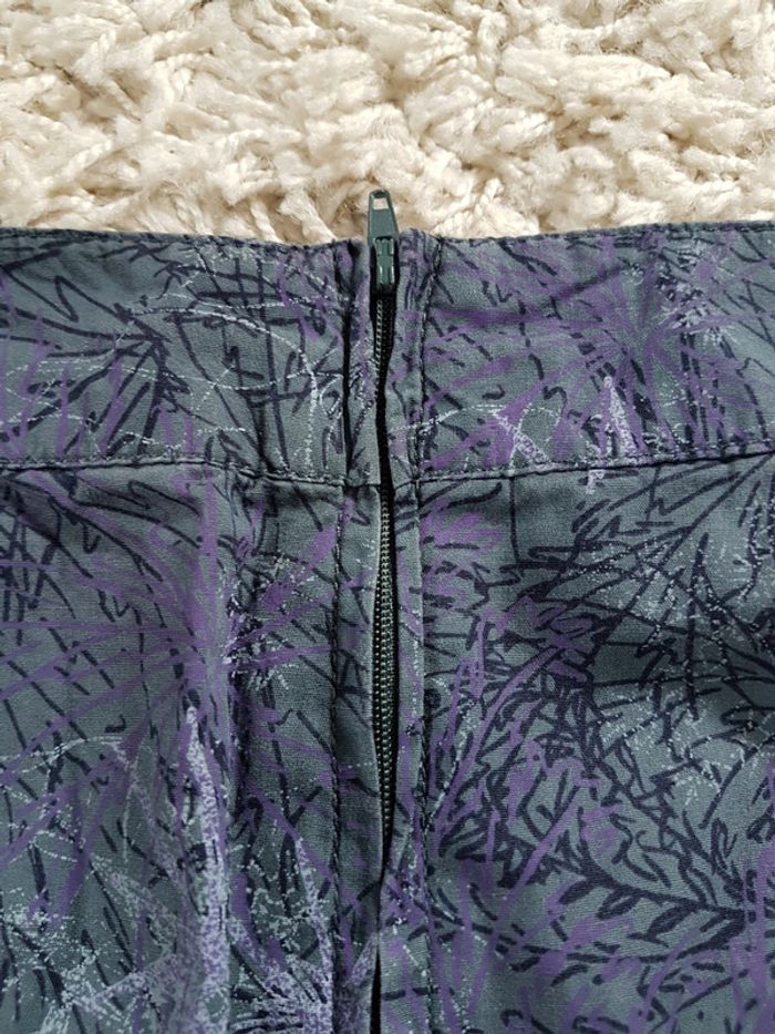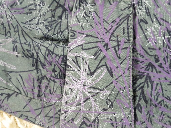 #38emma35310 Portée mais en très bon état Bel imprimé violet noir mauve sur fond gris 1 poche Très agréable à porter Fermeture invisible au dos Envoi rapide