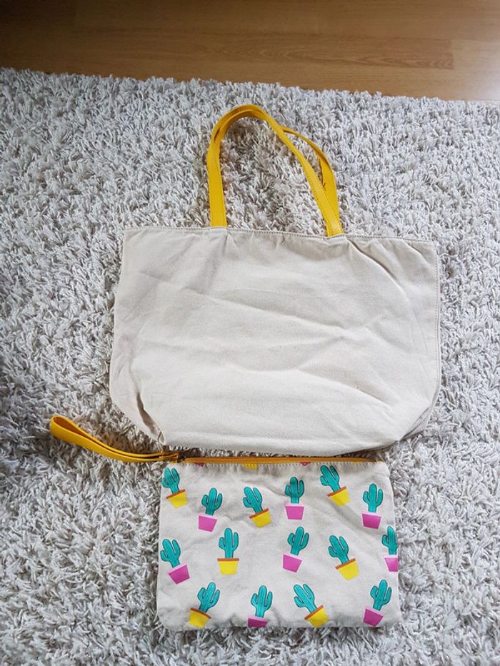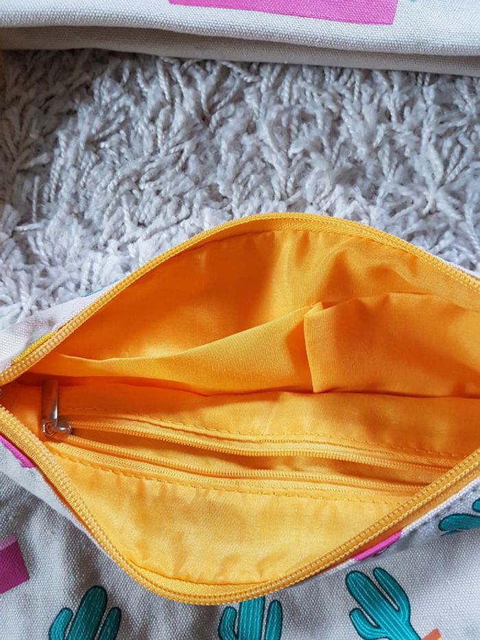 #sacsemma35310 Sac et pochette assortis Doublé Poche intérieure Fermeture éclair zippée Vert jaune rose turquoise Fond écru Envoi rapide