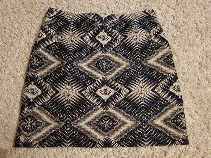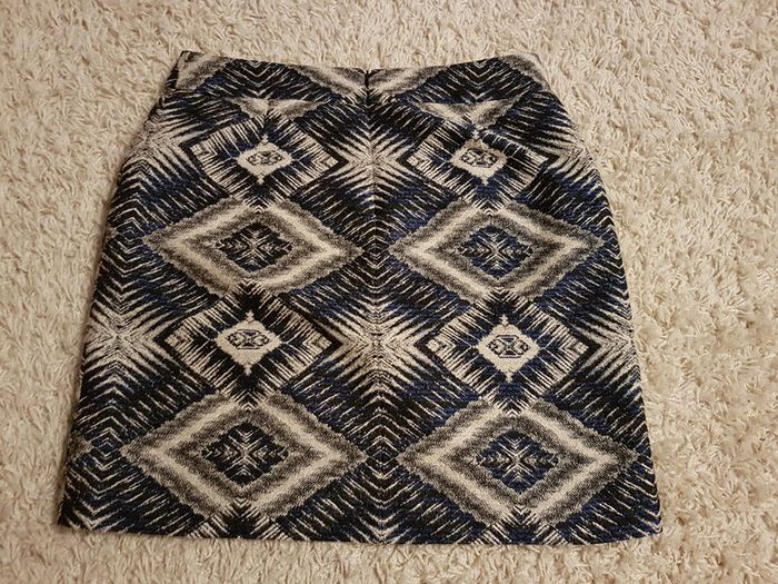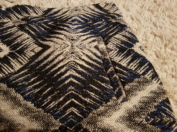 #42emma35310 Jolis motifs géométriques Bleu noir écru gris 2 poches Doublée (la doublure a été recousue) Envoi rapide
