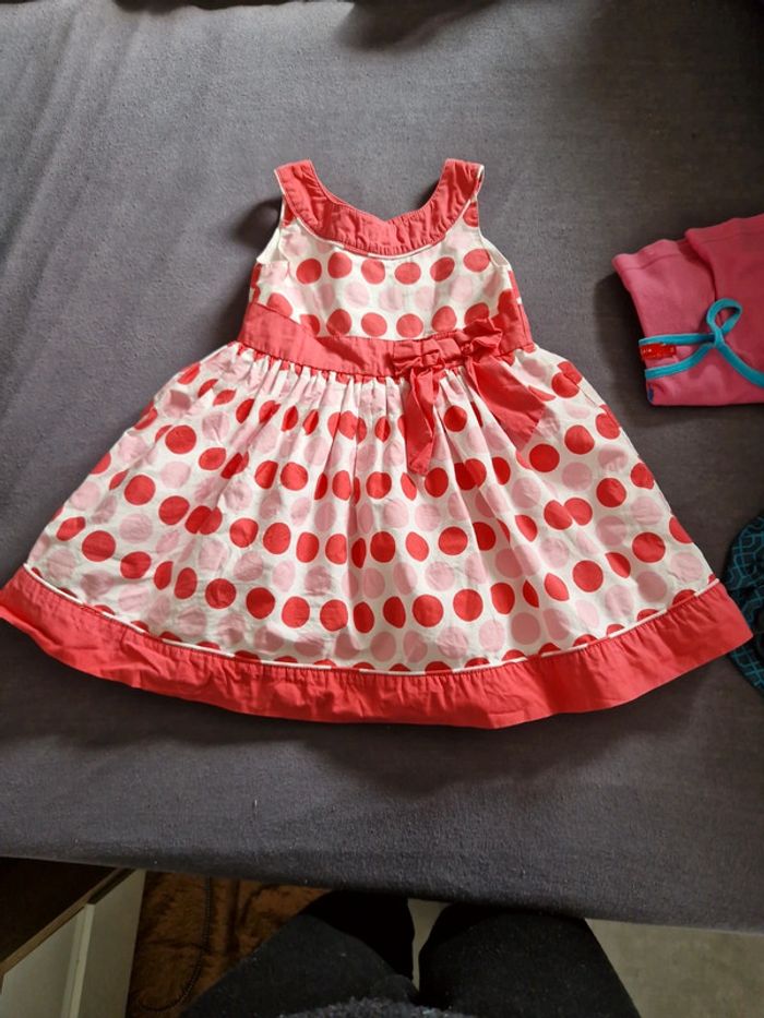Vend robe pouvant convenir pour une cérémonie mariage ou autre. Jamais portée... Taille 24 36 mois DONNE une robe d'été décontractée en taille 3 ans.