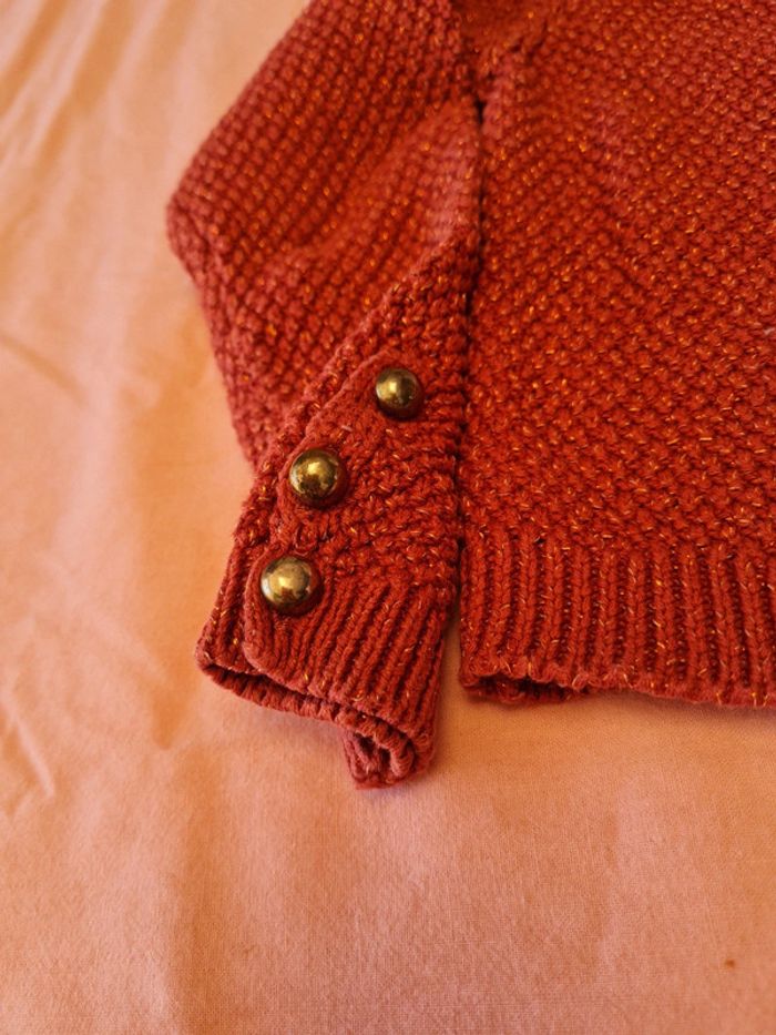 Gilet fille 3 boutons sur les manche, couleur rouille avec fil or photo 4 #fille3ansemylee62100