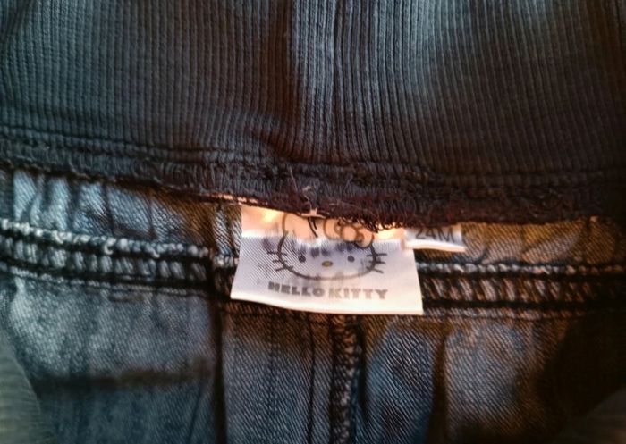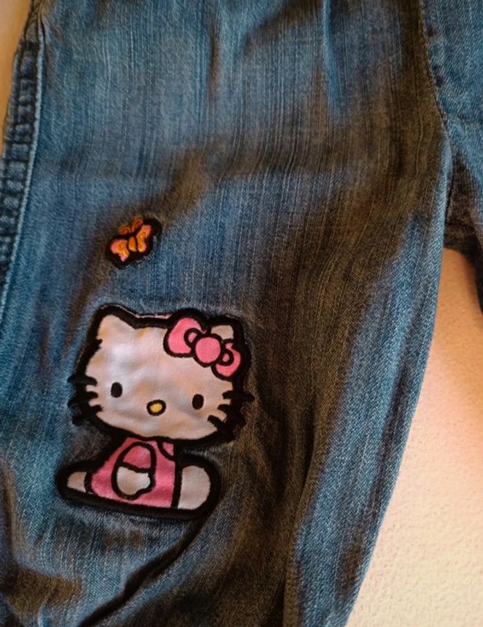 Pantacourt en jeans Hello Kitty, élastique à la taille, en très bon état. Taille 24 mois #jessybibou24mois2ans