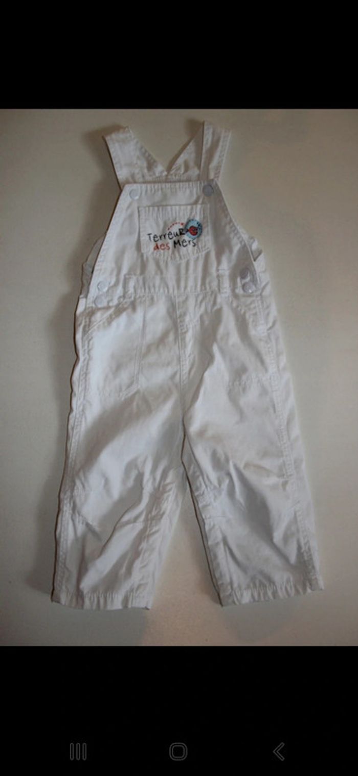 Salopette Kimbaloo blanche, bretelles réglables par pressions, peu porté en excellent état. Taille 18 mois #jessybibou18mois