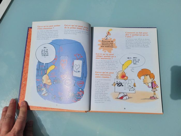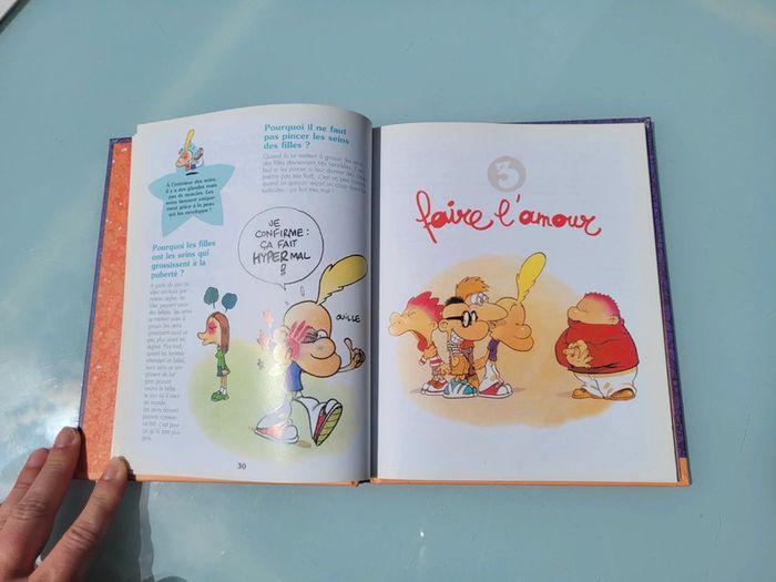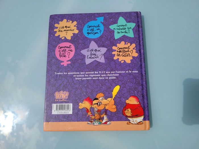LE GUIDE DU ZIZI SEXUEL EN ÉDITION ORIGINALE OCTOBRE 2001 LES TRUCS DE TITEUF C'est quoi être amoureux ?Comment c'est, un garçon ?Comment on embrasse sur la bouche ?Comment c'est, une fille ?C'est quoi faire l'amour ?Comment naissent les bébés ?Le Guide du zizi sexuel répond à toutes les questions que se posent les 9 / 13 ans sur la découverte de l'amour et du sexe.Si ce guide est avant tout destiné aux préados, il s'adresse aussi aux parents puisqu'il est une passerelle entre les interrogations des enfants et les réponses que cherchent les parents.En plein âge de curiosité, ayant soif de connaissance, ils trouveront dans ce guide pratique, grâce aux dessins de Zep et aux textes d'Hélène Bruller, les conseils et les informations utiles pour comprendre les mystères de la vie.Avec les mots du quotidien Le guide du zizi sexuel crée le dialogue, pose toutes les questions, donne les bonnes réponses. A part le bord de certaines pages légèrements jaunis vu son âge, en très bon état Pour voir mes autres livres enfants : #livreenfantmooglou #bdmooglou