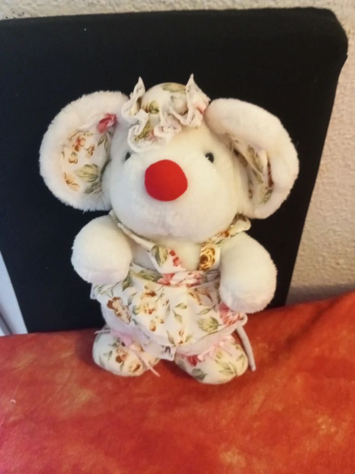 🚨N'hésitez pas à me demander pour les lots, ils ne se font pas automatiquement car vendeuse pro,réduction jusqu'à 30%🚨 Souris blanche vintage avec nez rouge et imprimé fleurs sur le chapeau, les oreillers , la robe et les chaussures. En très bon état, l'étiquette est effacé, vendu comme sur les différentes photos. Dans mon dressing, il y a d'autres doudous, des Petshop, des Lego Duplo, des Playmobil, des Barbie et beaucoup de peluches, jeux et jouets vintage #nourriture06_doudou