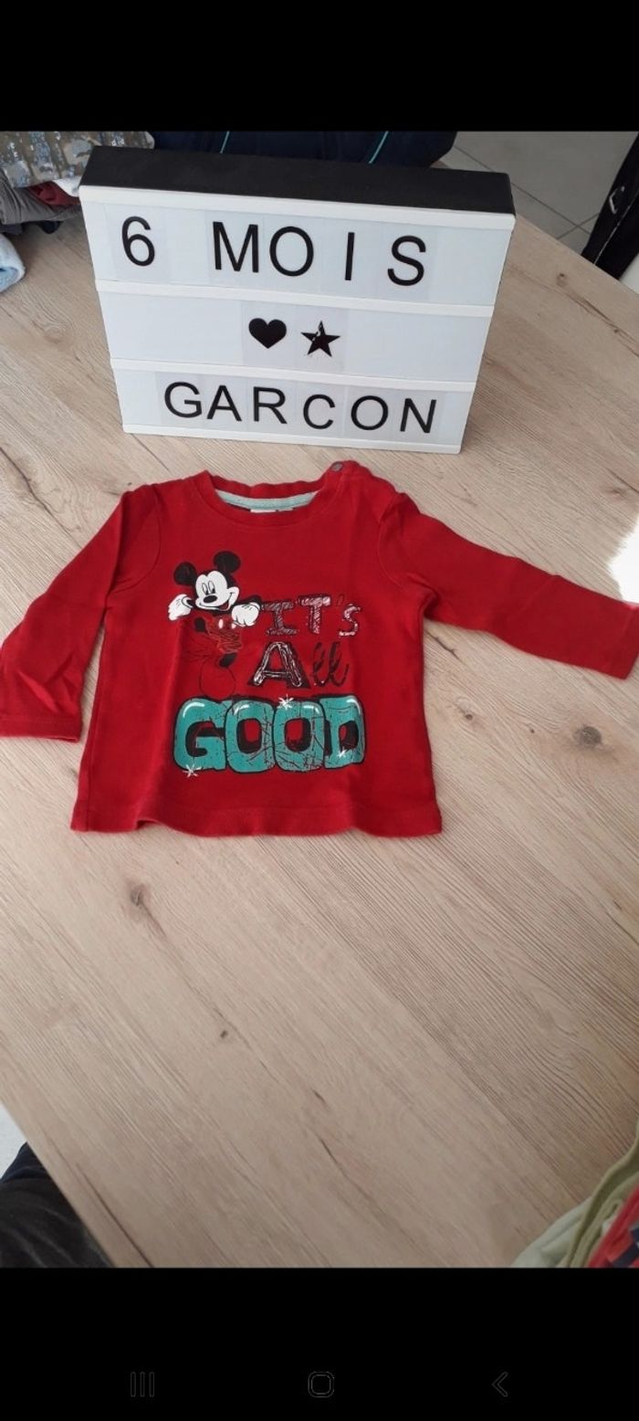Tee shirt manche longue rouge imprimé Mickey Pression sur l'épaule Taille 6 mois