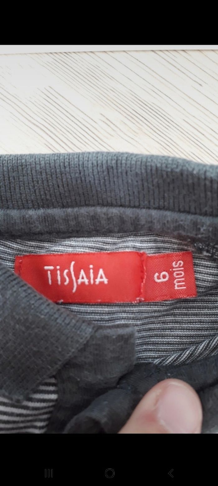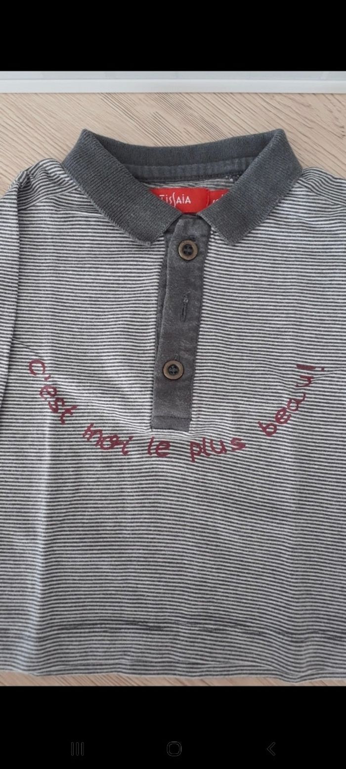 Polo rayé manche longue imprimé message devant. Bouton sur le devant. Taille 6 mois