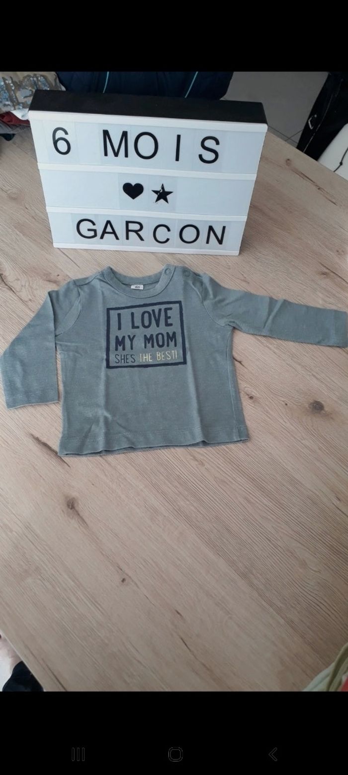 Tee shirt manche longue de couleur kaki avec message Pressions sur l'épaule Taille 6 mois