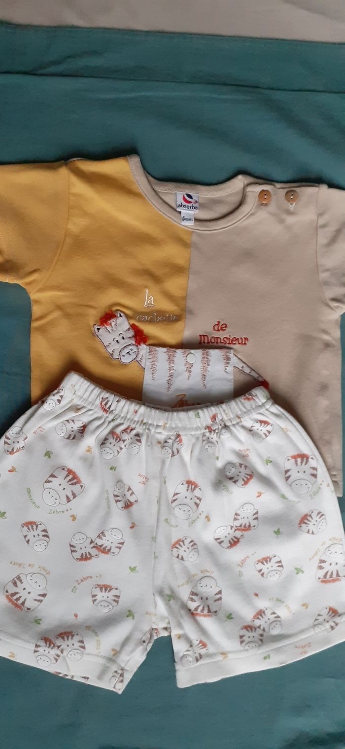 Vends un tee-shirt manches courtes et short assorti monsieur Zèbre marque Absorba 6 mois