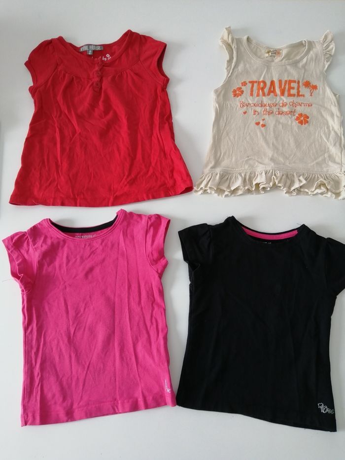Lot de 4 t-shirt. Taille 92 cm. Le jaune à une petite une tache de feutre (voir dernière photo)