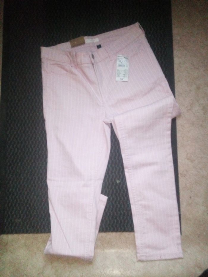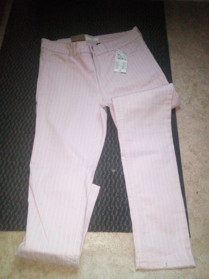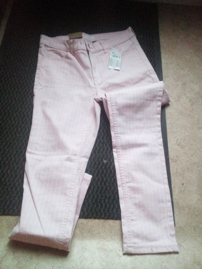 Jean slim rose à rayure blanche taille 38 Kiabi jamais porté