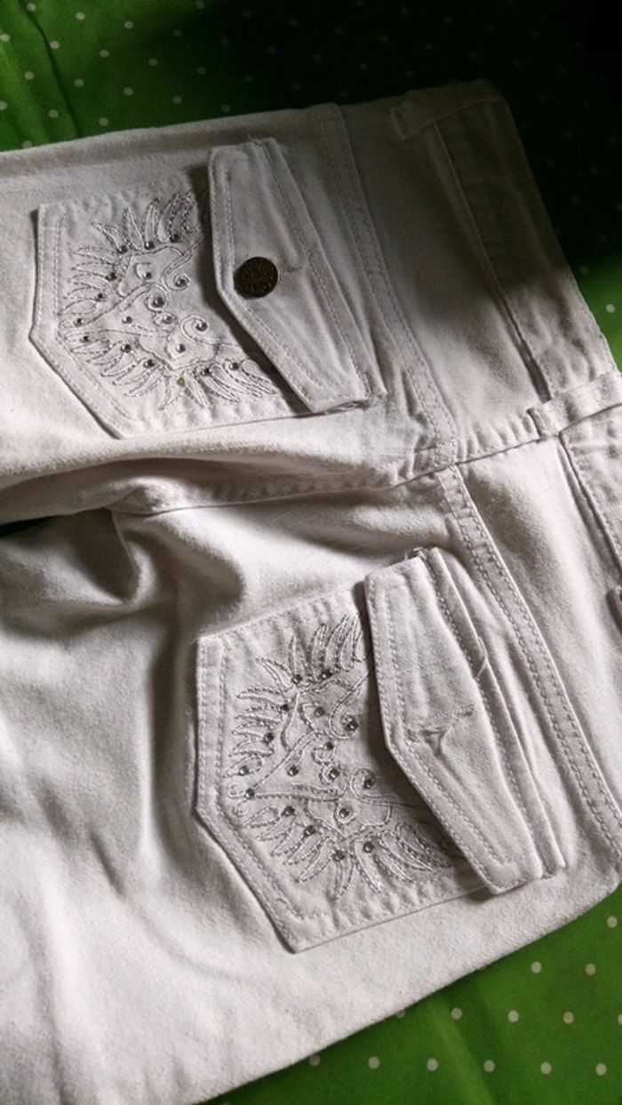 Bermuda blanc manque un bouton à l'arrière taille réglable