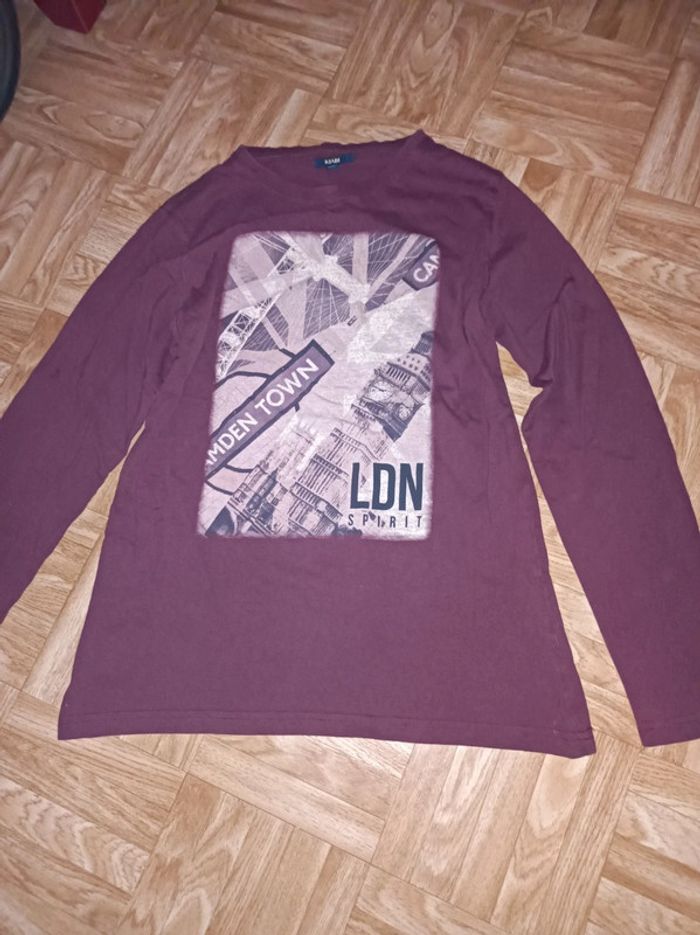 T-shirt manches longues garçon Kiabi taille XS bordeaux en très bon état - photo numéro 1