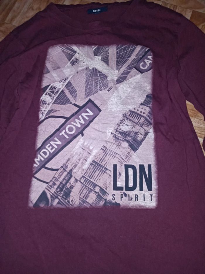 T-shirt manches longues garçon Kiabi taille XS bordeaux en très bon état - photo numéro 2