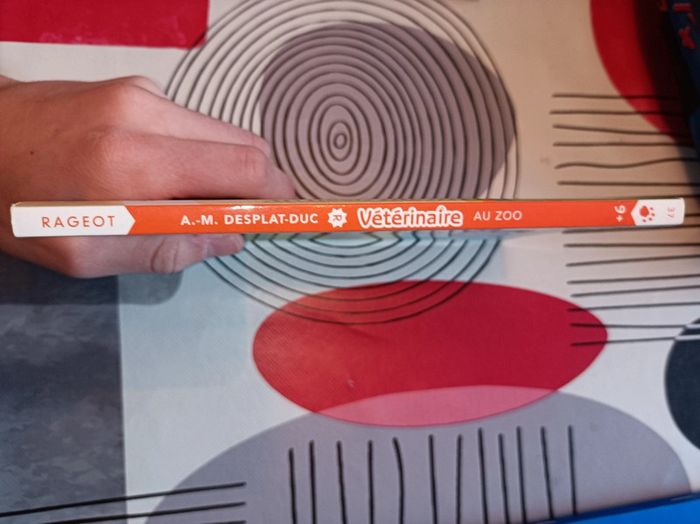 Livre Le vétérinaire au zoo (édition : Rageot)/ Auteur : Anne-Marie Desplat duc en bon état. Le livre comporte quelques défauts (voir toutes les photos) et il y a encore la trace de l'étiquette d'achat sur la couverture...