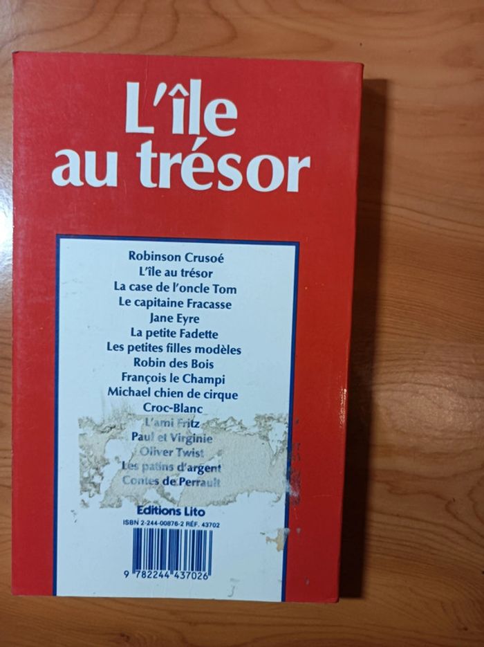 Livre : L'île au trésor ( édition : junior poche ) en état SATISFAISANT. En effet, la couverture du livre est abîmée, elle comporte quelques légères tâches sur le devant et il y a encore de grosses traces de l'étiquette d'achat derrière... Le livre est complet mais le bloc de page se décolle (pas entièrement) de la couverture. --> voir toutes les photos Si vous avez des questions, n'hésitez pas à me contacter.