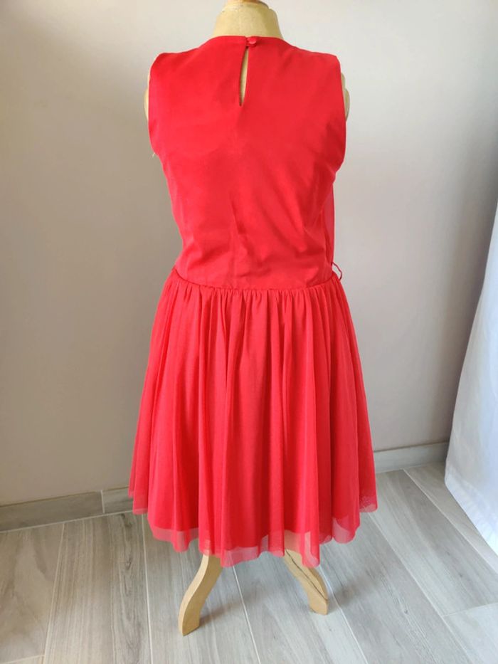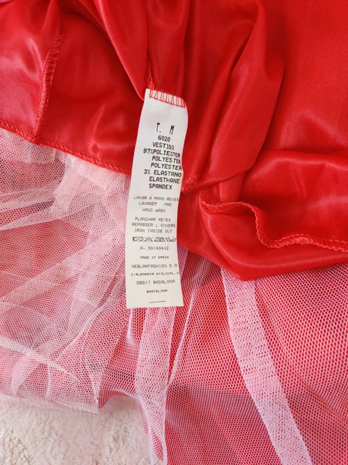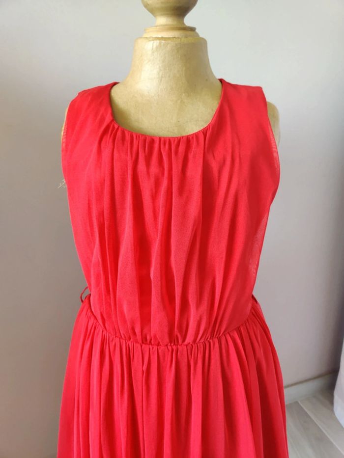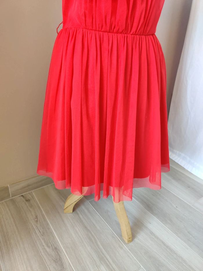 Robe rouge plissée en tulle . Moins flashy que sur la photo. Taille M sur l'étiquette, mais taille petit, plutôt pour un S