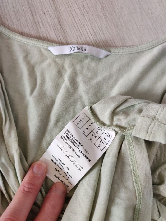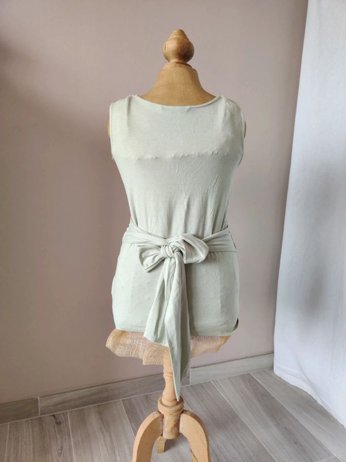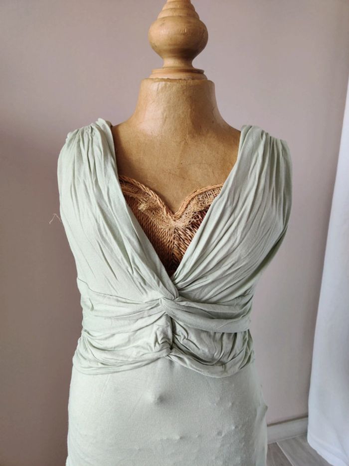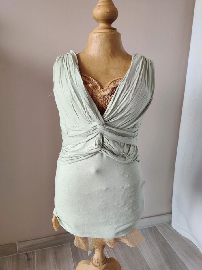 Débardeur couleur vert d'eau, avec joli décolleté drapé. Liens à nouer dans le dos. Xanaka, taille S
