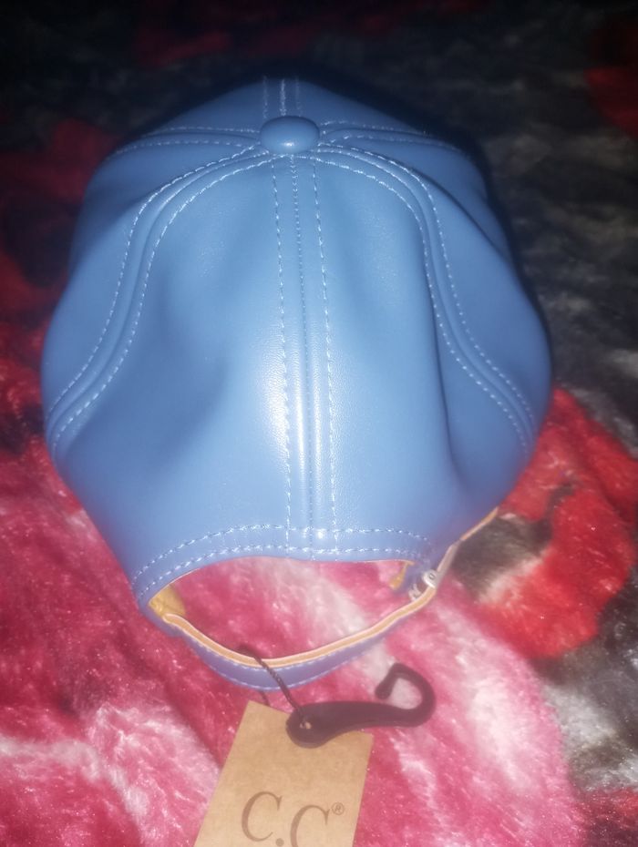 Casquette simili cuir mixte couleur bleu et moutarde a l intérieur neuve taille unique réglable