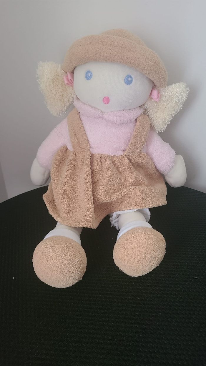 DOUDOU POUPÉE FILLE ROBE BEIGE ROSE NOUNOURS 141