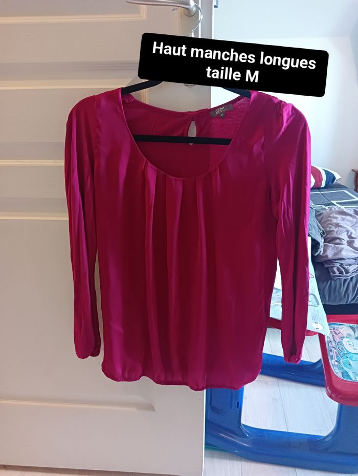 🌸 Joli haut manches longues taille M. En parfait état. Marque " Grain de Malice" ✨ Taille M ( quelques mesures en photos) ✨ Se porte avec un effet un peu " boule" en bas , il y a un élastique. ✨ Haut bi-matières effet " soie" sur le devant et coton au niveau des manches et au dos . ✨Jolie couleur fushia