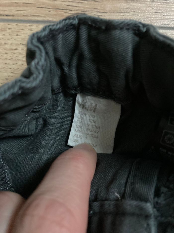 Pantalon gris foncé Marque : H&M Taille : 9-12 mois Matière : 100% coton Etat : très bon état N’hésitez pas à regarder l’ensemble du dressing, je fais des prix pour les lots 🍀