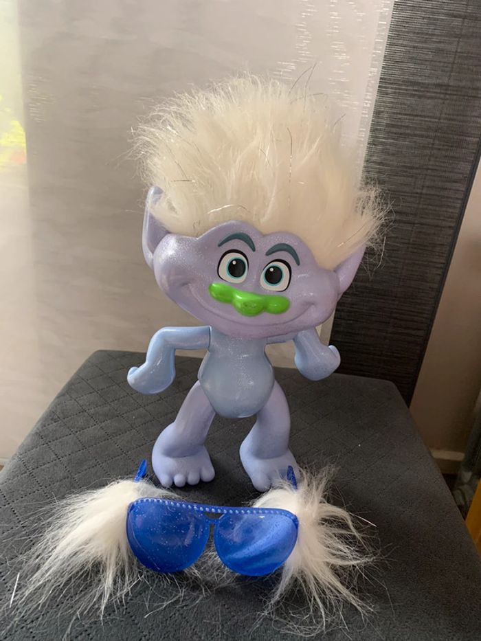 Poupée troll articulée cheveux blanc avec lunette Dimensions environ 30cm En très bon etat Envoi rapide et soigné
