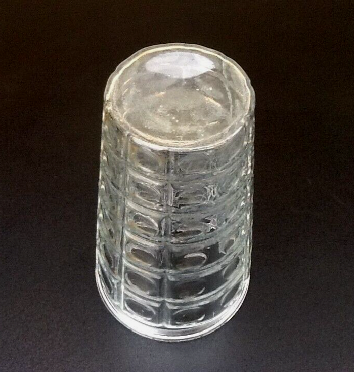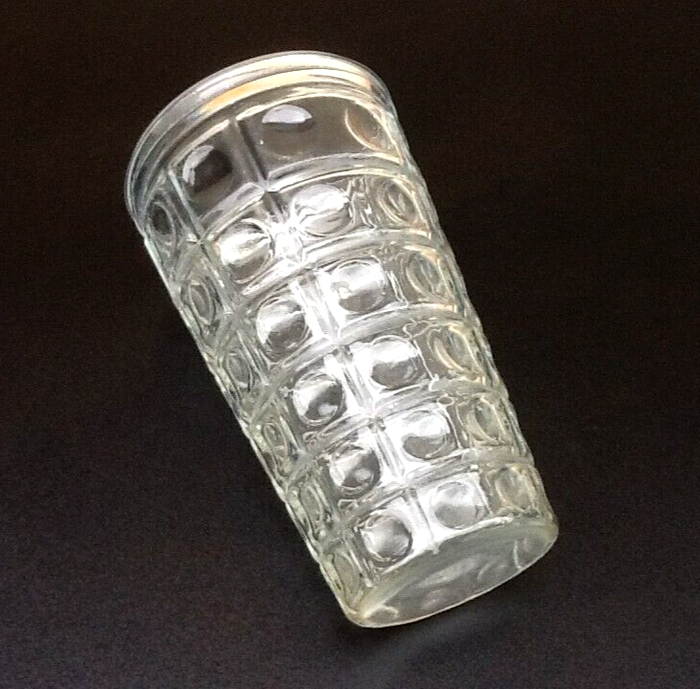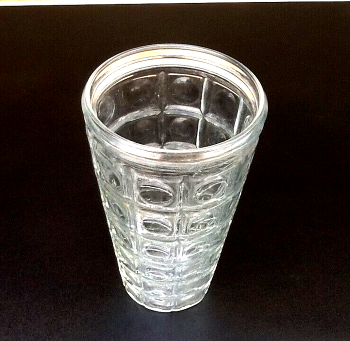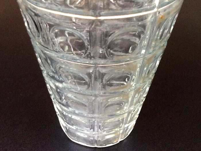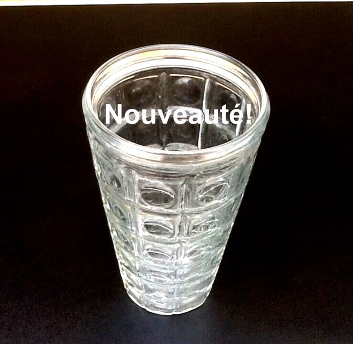 Années 1970 Vase à décor de cabochons Verre transparent France Hauteur : 220mm Diamètre : 130mm Poids : 870grs